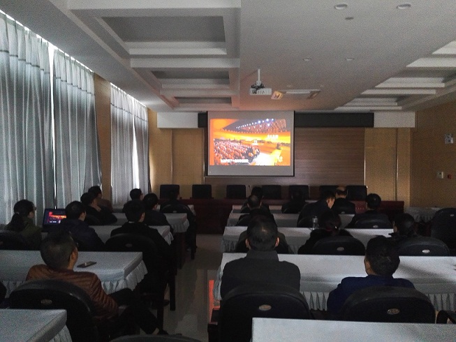 2018年11月13日下午集团公司党总支组织下属四个支部全体党员在11楼会议室集中收看《榜样3》专题节目