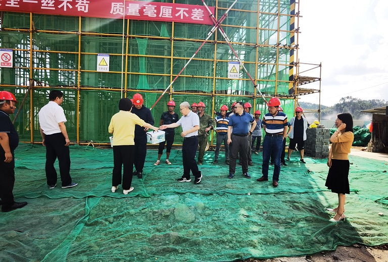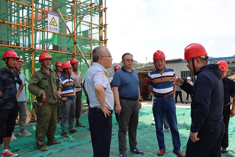 在黄山市危险(含医疗)废物集中处置中心易地重建工程项目,城投集团董事长陈杰、副总裁韩灶义、纪检书记詹燕等实地了解项目高温生产情况,与公司董事长项端阳和项目部职工亲切交流,陈杰强调,要积极做好防暑降温工作,提高项目管理水平,按期完成合同目标任务。
