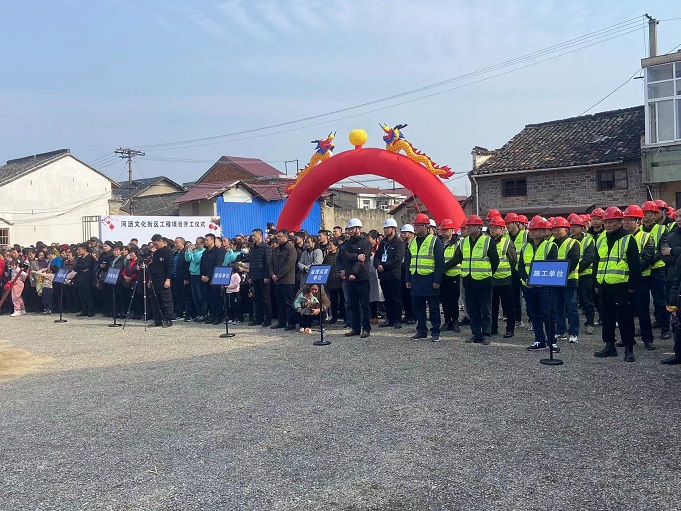 米兰平台-米兰(中国) 董事长项端阳、总经理叶金发、副总经理吴学武及项目负责人和部分施工人员参加了宁国市河沥溪文化街区工程项目的开工盛典。