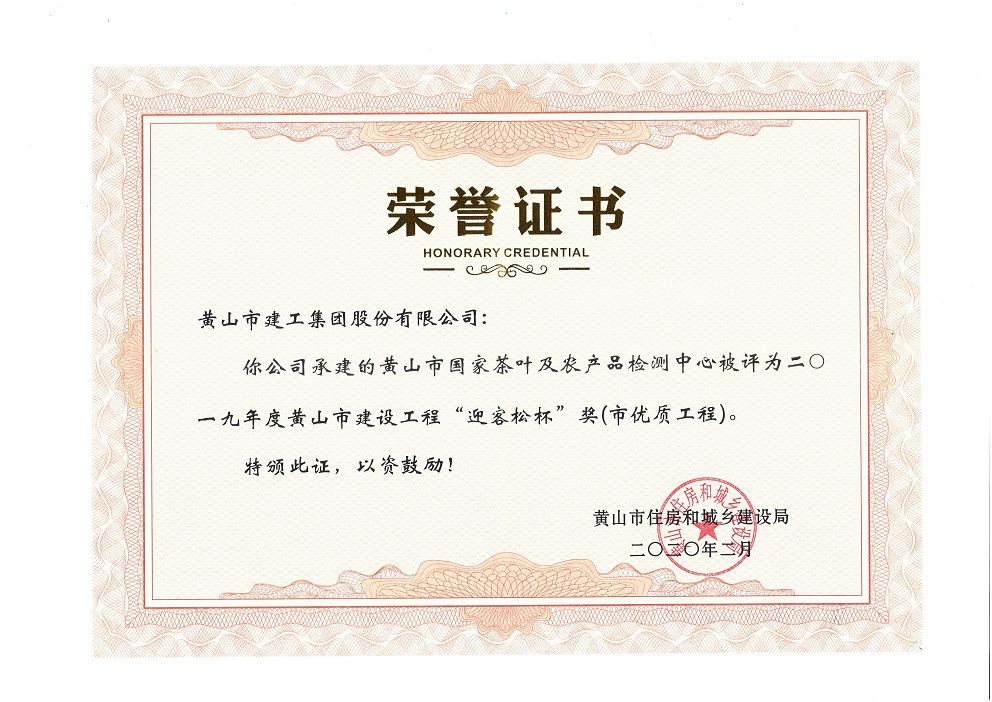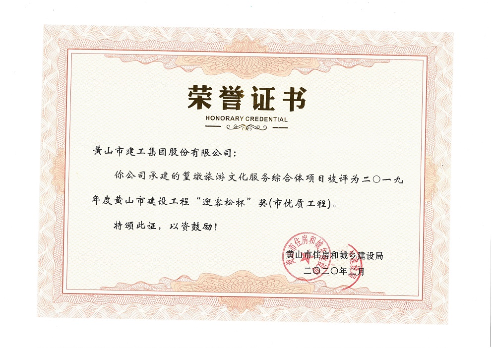 2019年度黄山市建设工程优质工程奖