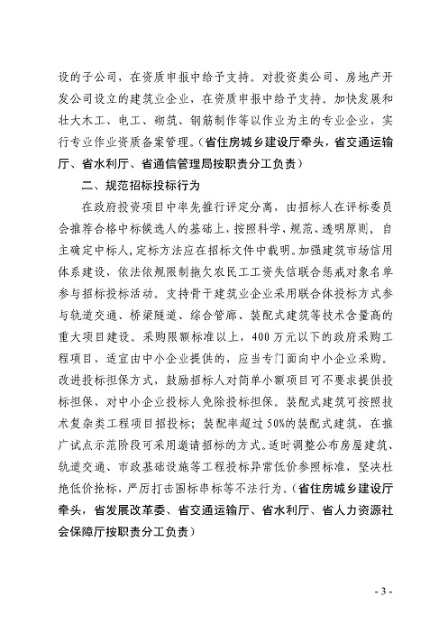 关于持续推进建筑业发展的十二条意见